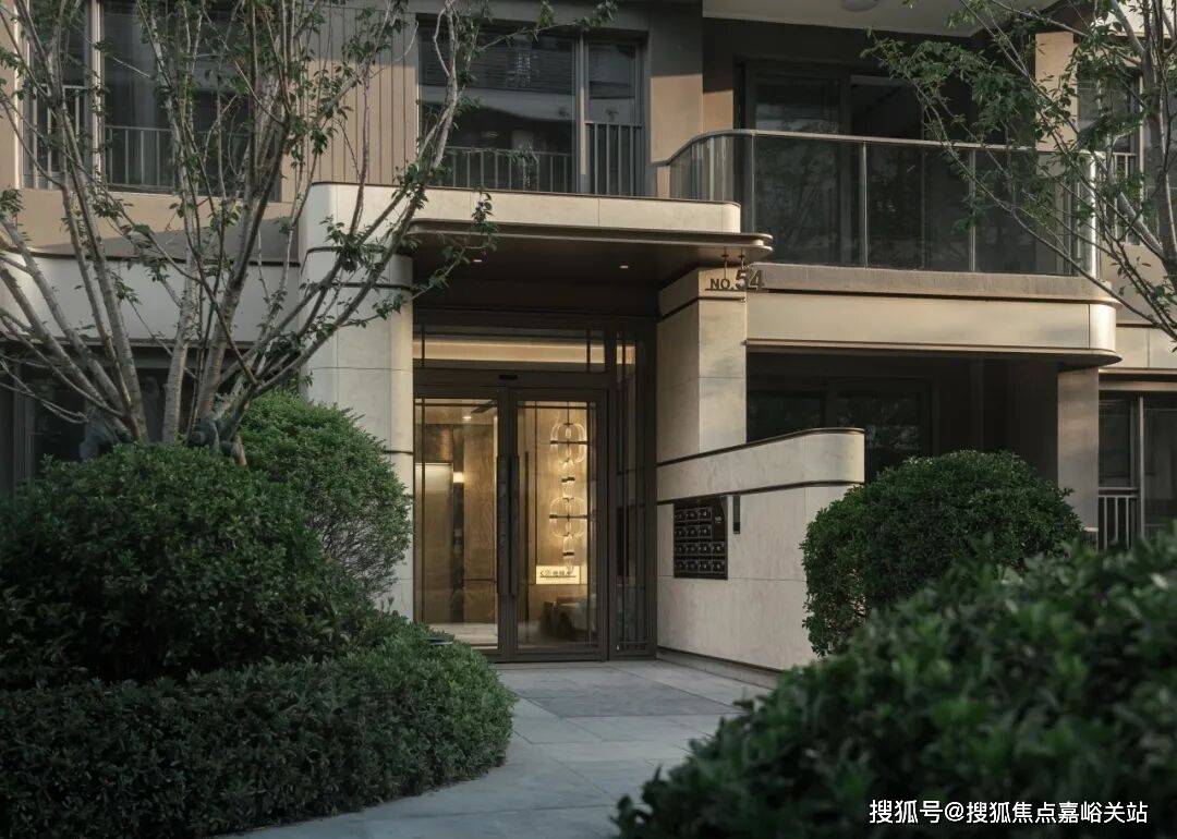 在单元入口和社区会客厅入口的立面上,都通过将弧形元素与米黄色石材和香槟金色金属构建相结合,在视觉上呈现出一种温暖而优雅的气质。