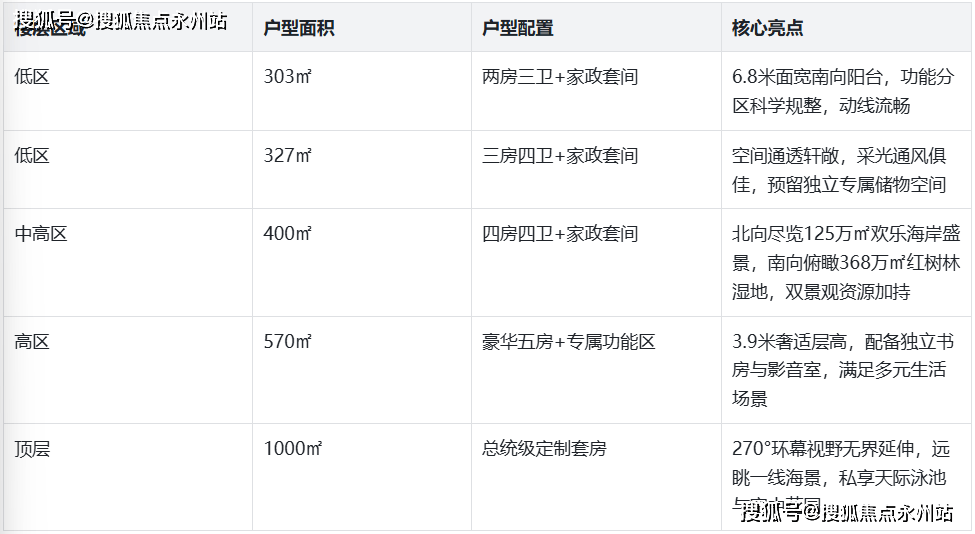 顶级户型:1032㎡超大平层,因270°环幕视野及一线亿元,定位全球企业主与塔尖收藏者。