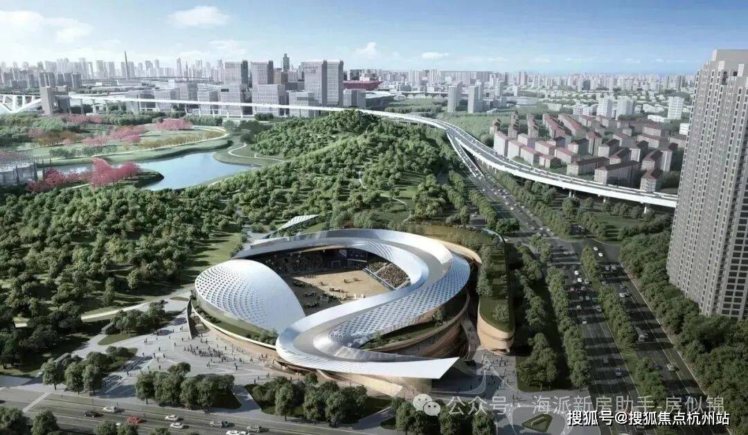 久事国际马术中心是国内首座符合国际顶级马术赛事标准的专业场馆。主体建筑包括竞赛场地、热身场、训练场和马厩等竞赛设施以及5000座的观众看台。山、水、谷的设计理念。目前已完成地上、地下结构、钢结构、升降灯架等重要工序。