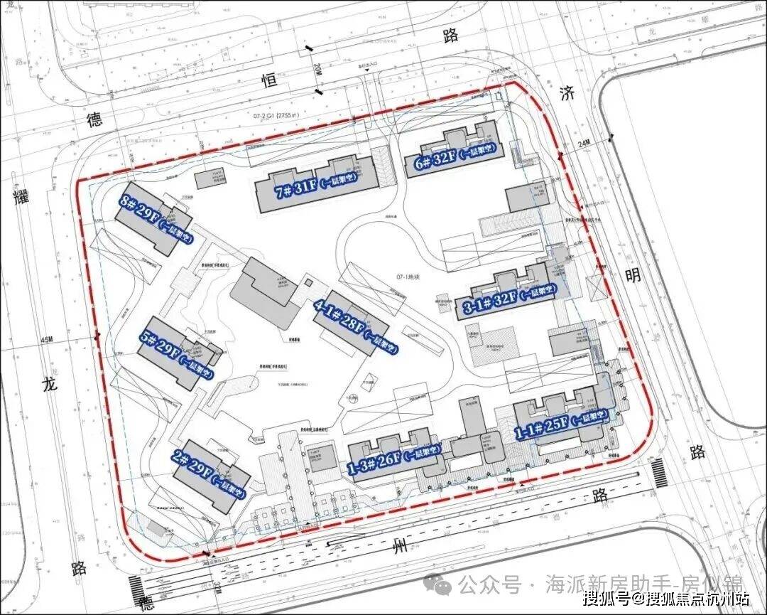 根据项目规划设计方案,07-01地块拟建9幢超高层住宅,其中7幢百米高层住宅(28-32层)、1幢83米高住宅(25层)和1幢86米高住宅(26层),若干社区配套用房以及部分商业设施,共计规划约794户。建面120㎡以下中小套型占比要求不低于40%。