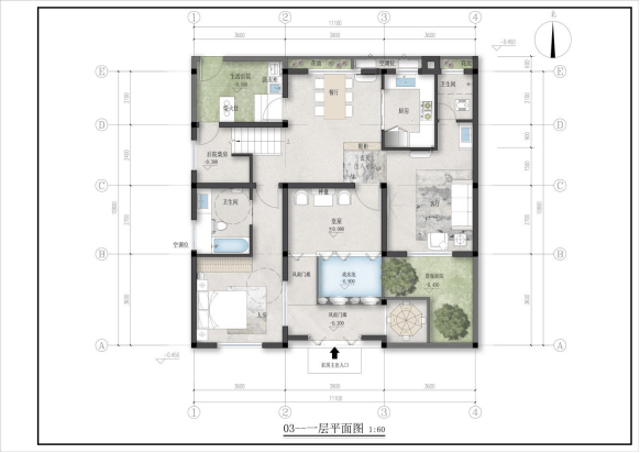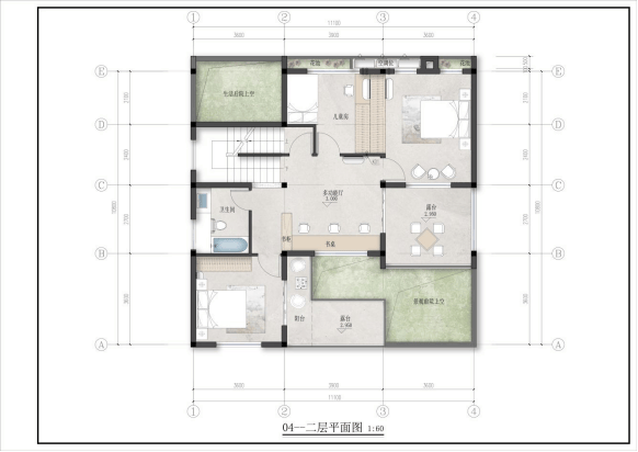设计紧扣三代六口之家生活场景,兼顾私密性与团聚感,打造全龄适配的宜居空间。全屋核心区域均采用无障碍设计,贴合老人起居需求;分层布局合理,既保障中年夫妇私密空间,也为孩子预留独立成长天地;前庭后院兼顾乡村实用功能,营造休闲、亲子、社交多元场景,让家成为凝聚亲情、联结邻里的温暖港湾。