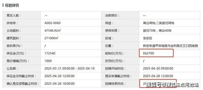 2024年8月22日,宝中A002-0108宗地开拍,经过187轮竞价,招商、华润联合体以86.4亿拿下该地块,楼面地价约5.96万/㎡,溢价率约34.81%。