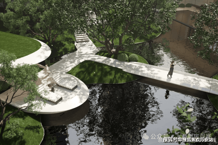 中央水景轴线:贯穿小区的中央水系,结合雾森系统与亲水平台,形成“可游可憩”的互动空间。水景两侧种植乌桕、樱花等本土树种,春季樱花纷飞,秋季乌桕染红,四季景观各异。